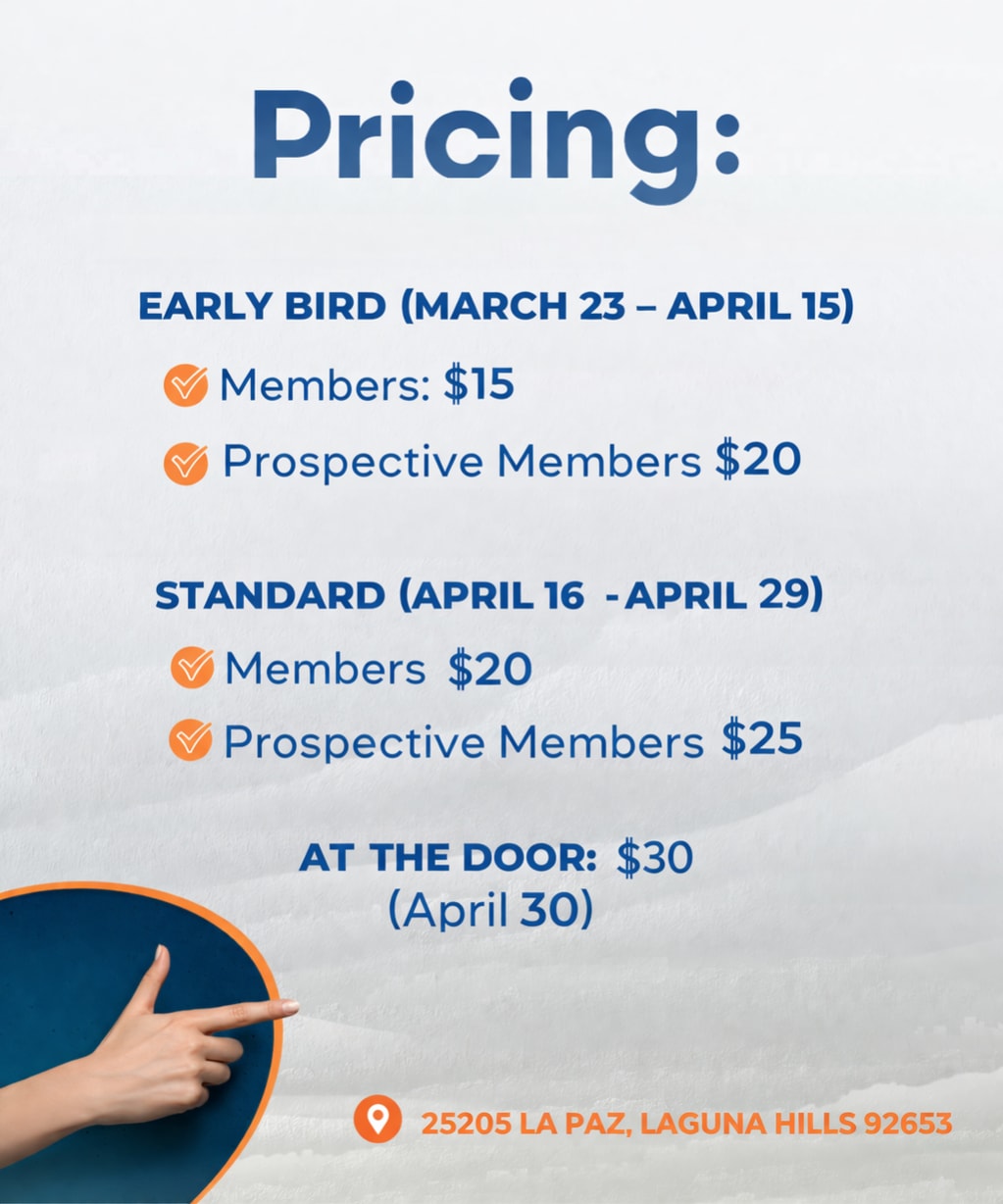 π Thursday, April 30, 2026β° 5:30 PM – 7:30 PMπ VOCO Laguna Hills